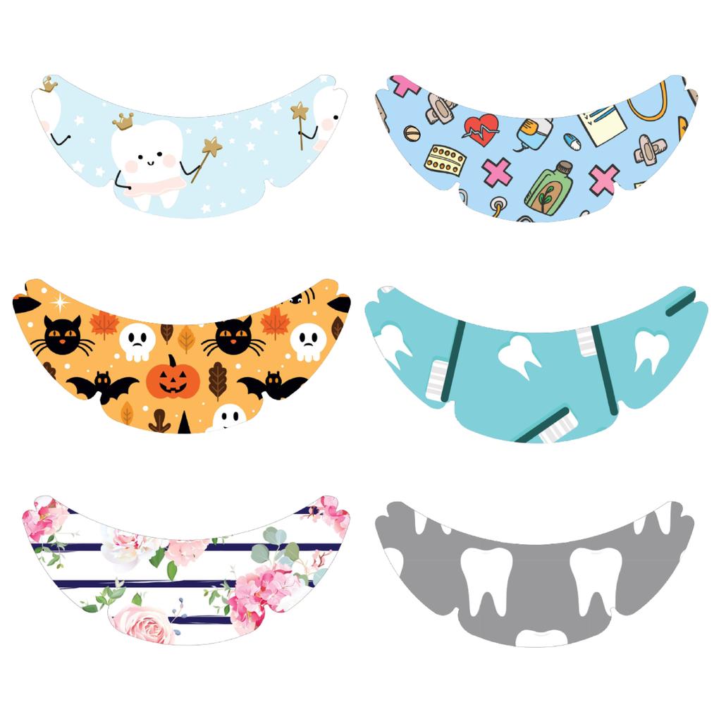 Now to the most important feature: customizable designs! We currently offer colored visors and an assortment of top shield design inserts. Our fun designs are a great way to add a little color to your PPE wardrobe and a great conversation starter for your patients.