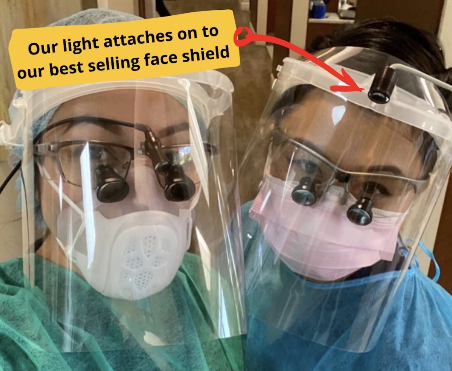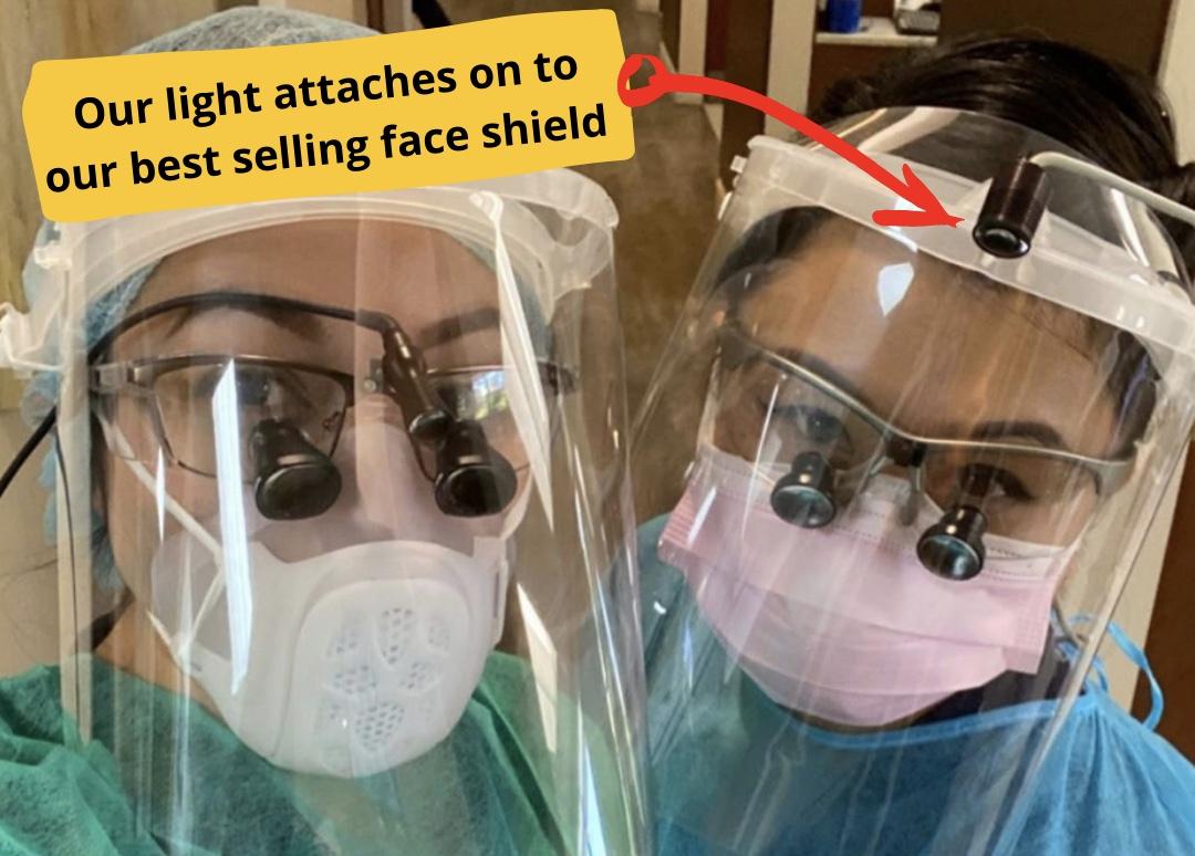 This headlight attaches to our best-selling face shield AND features over 100 different attachments designed to fit all loupes, goggles, and eyeglasses.