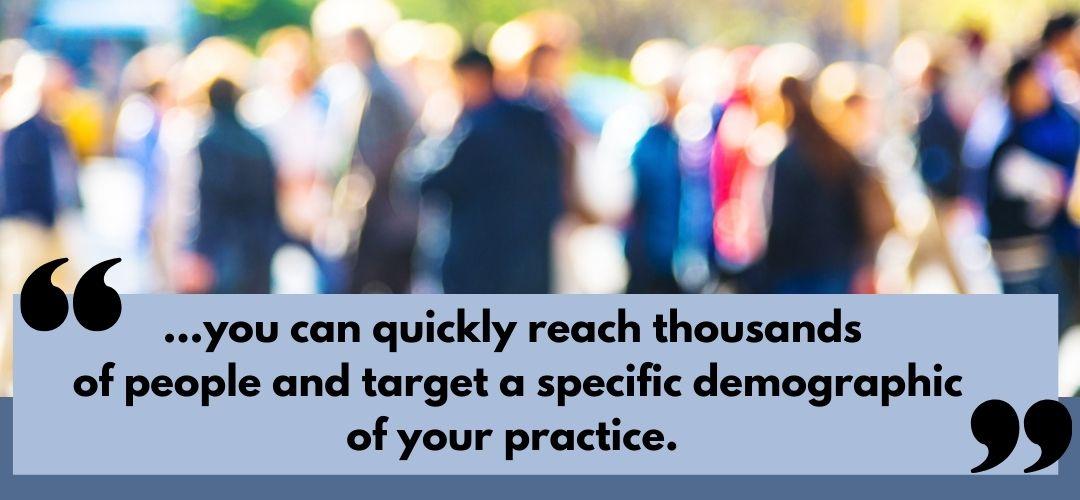 Social media ad campaigns are wonderful because you can quickly reach thousands of people and target a specific demographic of your practice. If you choose to promote teeth whitening or dental implants, you can use a Facebook ad to target an age group and demographic looking specifically for those dental services.