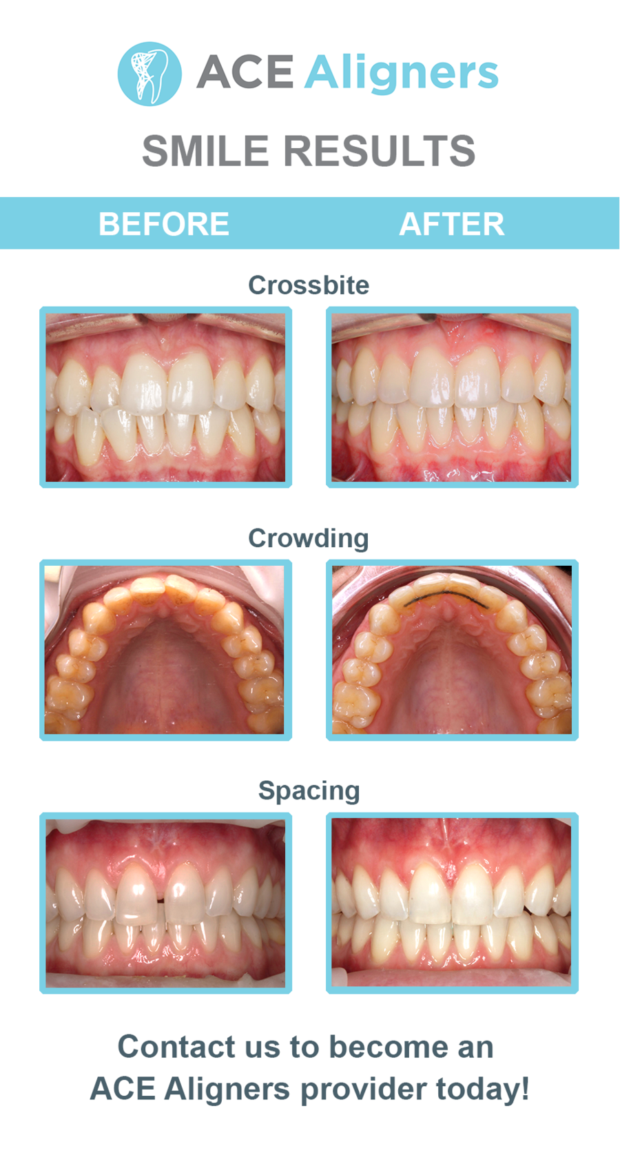 Special FREE Short Term Case ($495 value up to 20 aligners) for Doctors trying ACE Aligners for the first time.